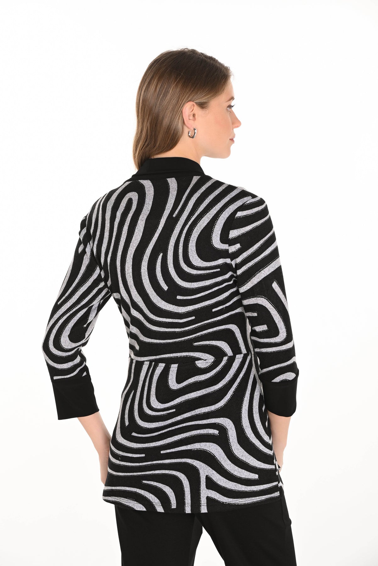 Discover the Frank Lyman open-front cardigan, your essential wardrobe transformer that effortlessly bridges casual weekends and professional environments. This hip-length, regular fit design showcases a sophisticated round neckline and elegant 3/4 sleeves with distinctive keyhole details and embellishments. The captivating abstract and striped patterns elevate this piece beyond ordinary cardigans, ensuring you'll stand out whether you're enjoying a night on the town or adding polish to everyday ensembles.