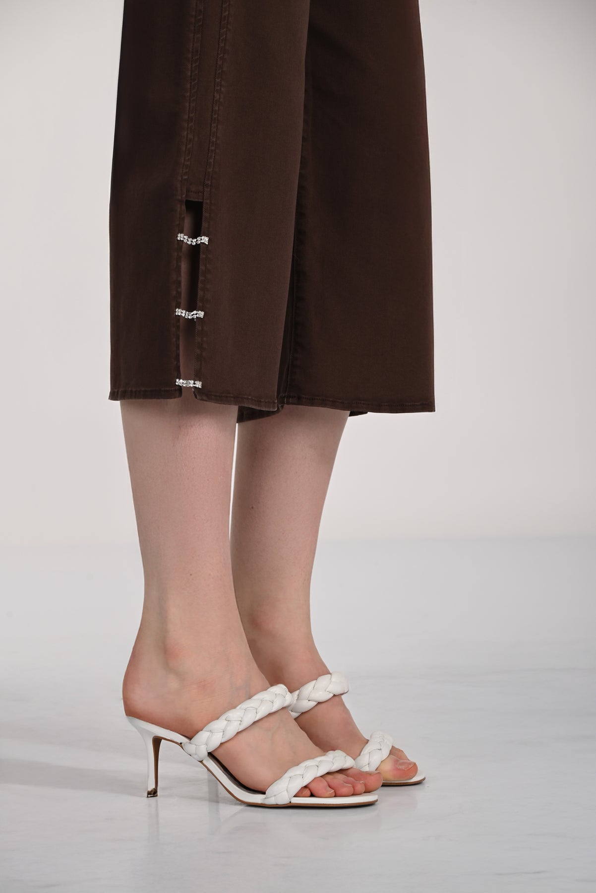 Luxe Cropped Flare pants combine a sleek coated finish with soft stretch fabric for all-day comfort. The mid-rise fit and subtle flare offer a flattering shape, while zip pockets and embellished hem details elevate your look. Dress them up or down—these versatile cropped flares work for any occasion.