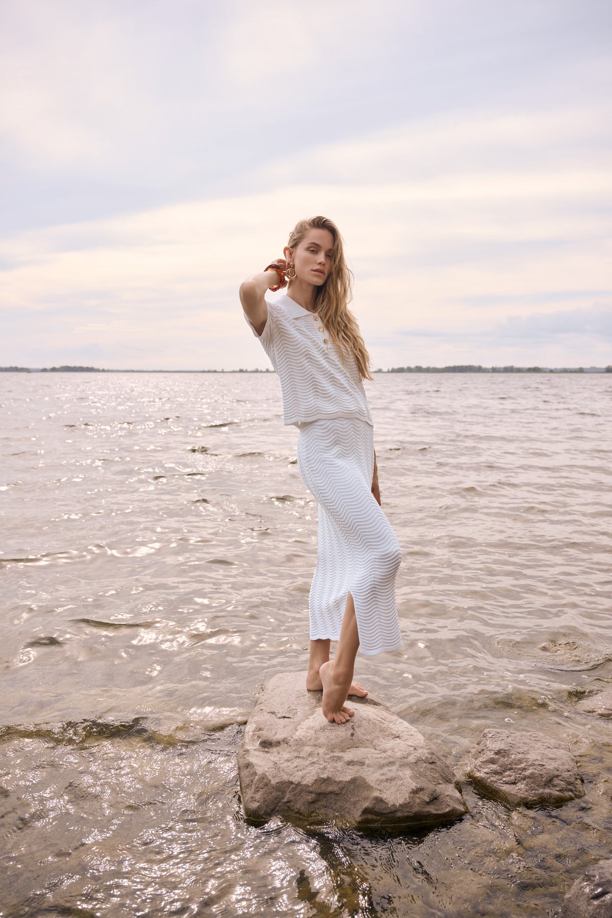 Sleek and sophisticated, this viscose knit pencil skirt delivers effortless elegance. The textured fabric drapes beautifully while the fully lined construction and elastic waistband ensure all-day comfort. Side slits add movement and style to this versatile wardrobe essential.