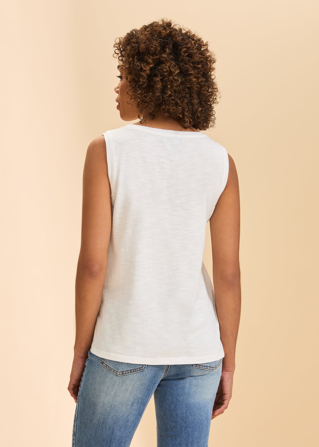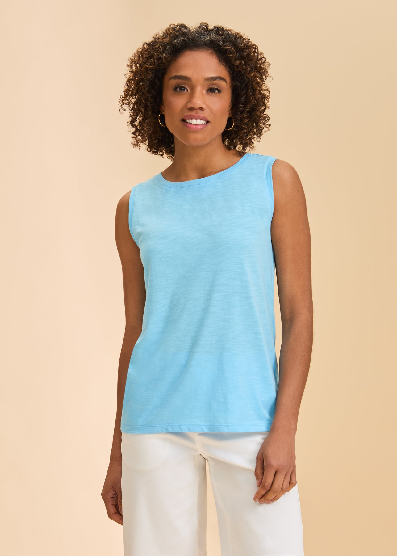 A versatile sleeveless knit top that works with everything in your closet. The smooth crew neckline and subtle texture create an effortlessly polished look, while the lightweight, breathable fabric keeps you comfortable all day. Perfect as a base layer or standalone piece—the flattering fit makes it a wardrobe staple you'll wear constantly.