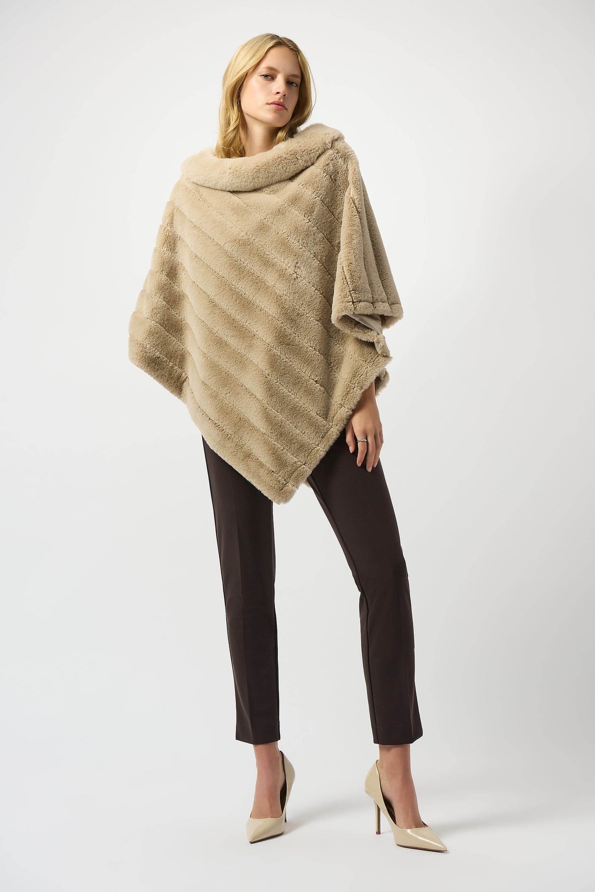 Elevate your winter style with this chic faux fur poncho. Showcasing a textured diagonal stripe design, it boasts a refined mock neck and a fully lined interior to keep you cozy during cold days. This luxurious outerwear is the perfect standout addition to your cold-weather collection.