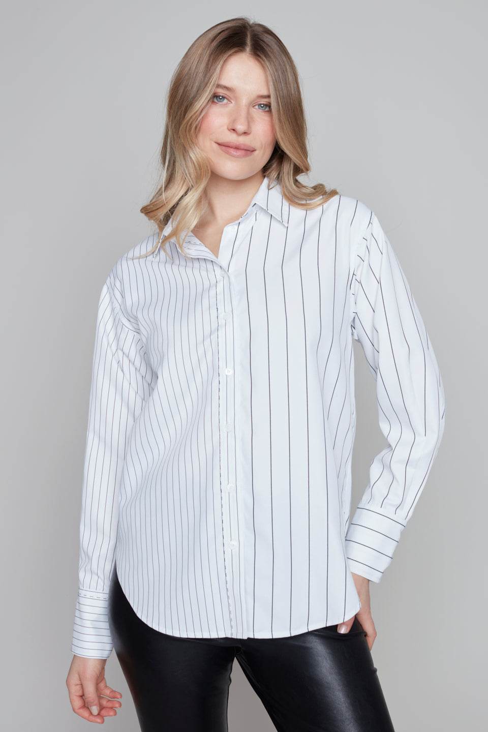 This blouse is designed to provide maximum comfort and durability. With its classic striped pattern, it is a versatile addition to your wardrobe that will never go out of style.
