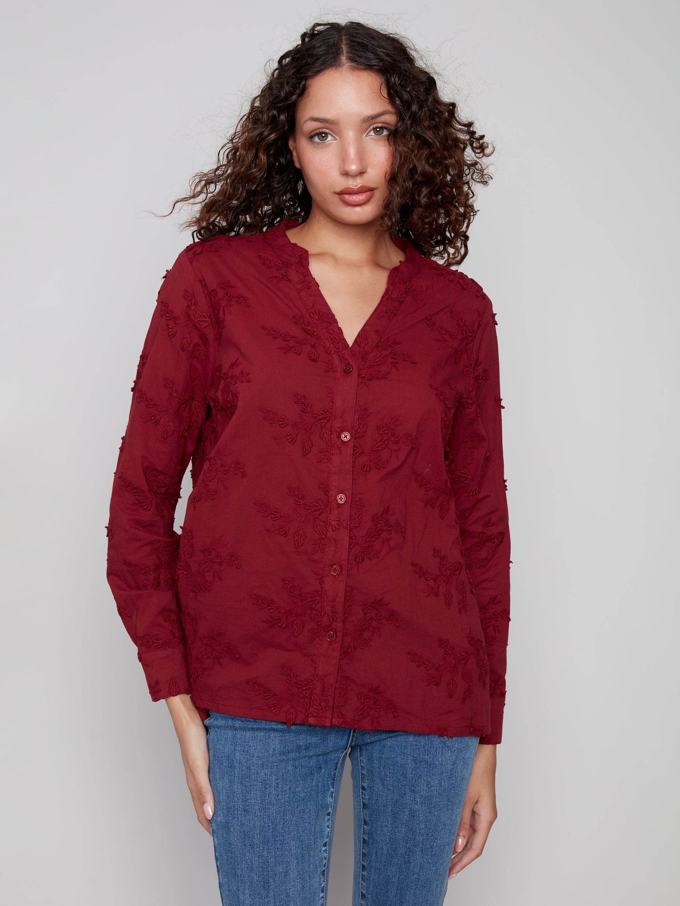 Floral Appliqué Button-Up Blouse