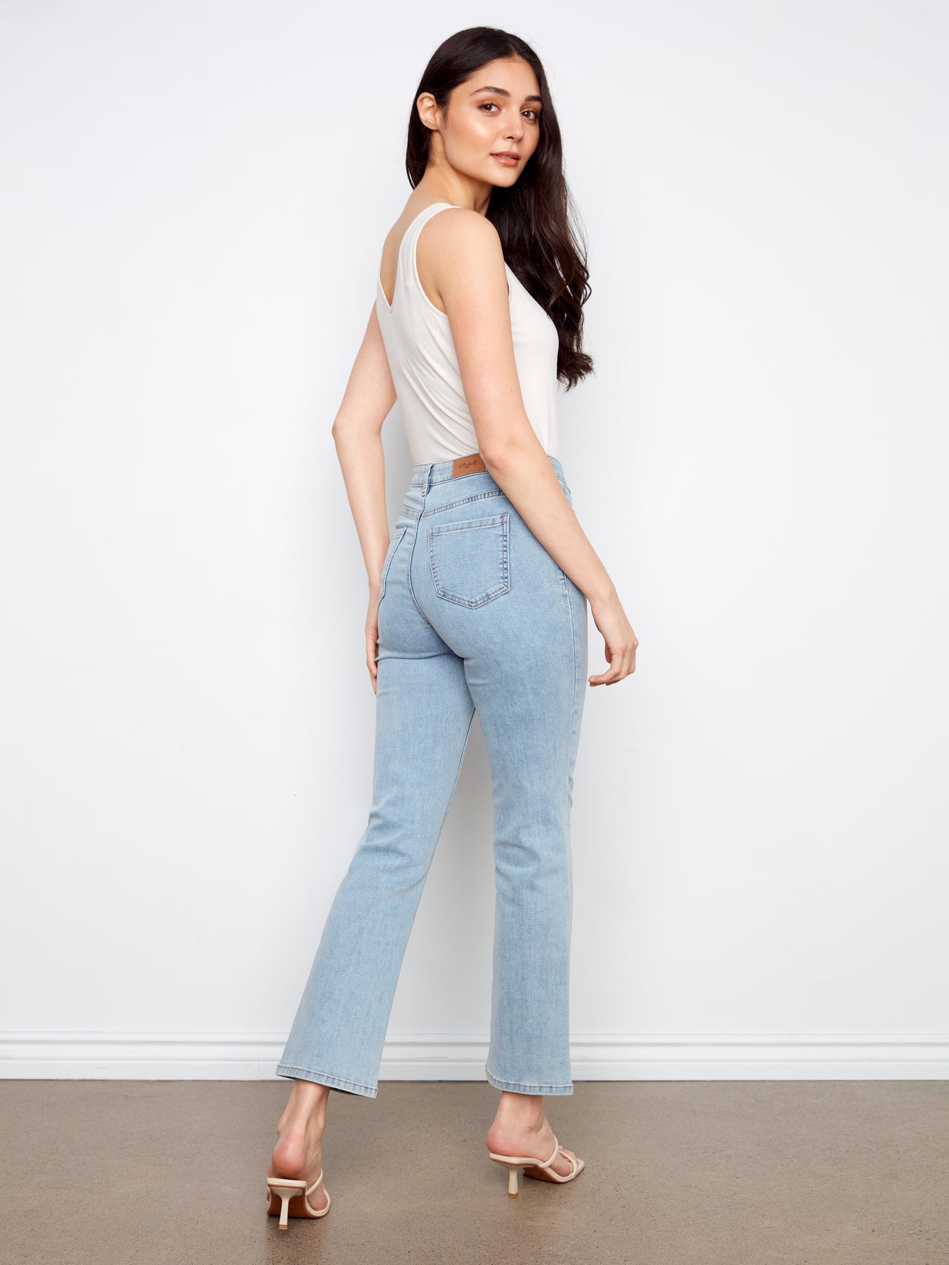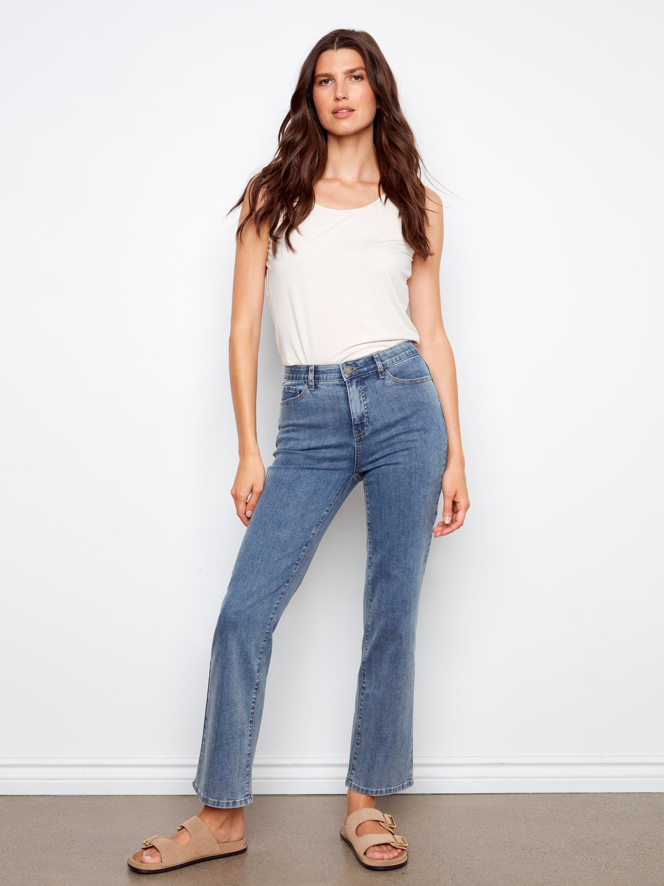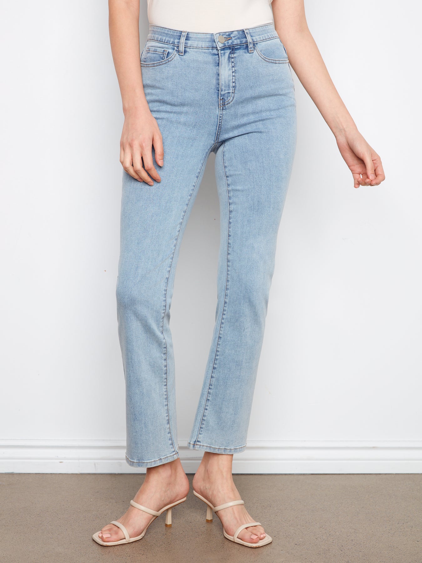 The Charlotte Straight Leg Jeans offer a timeless denim look with a clean, versatile silhouette. Designed with a flattering straight leg fit, they sit smoothly through the waist and hips before falling into an easy, streamlined leg. Crafted from soft stretch denim with classic five-pocket styling, they deliver all-day comfort and effortless polish for both casual and dressed-up outfits.