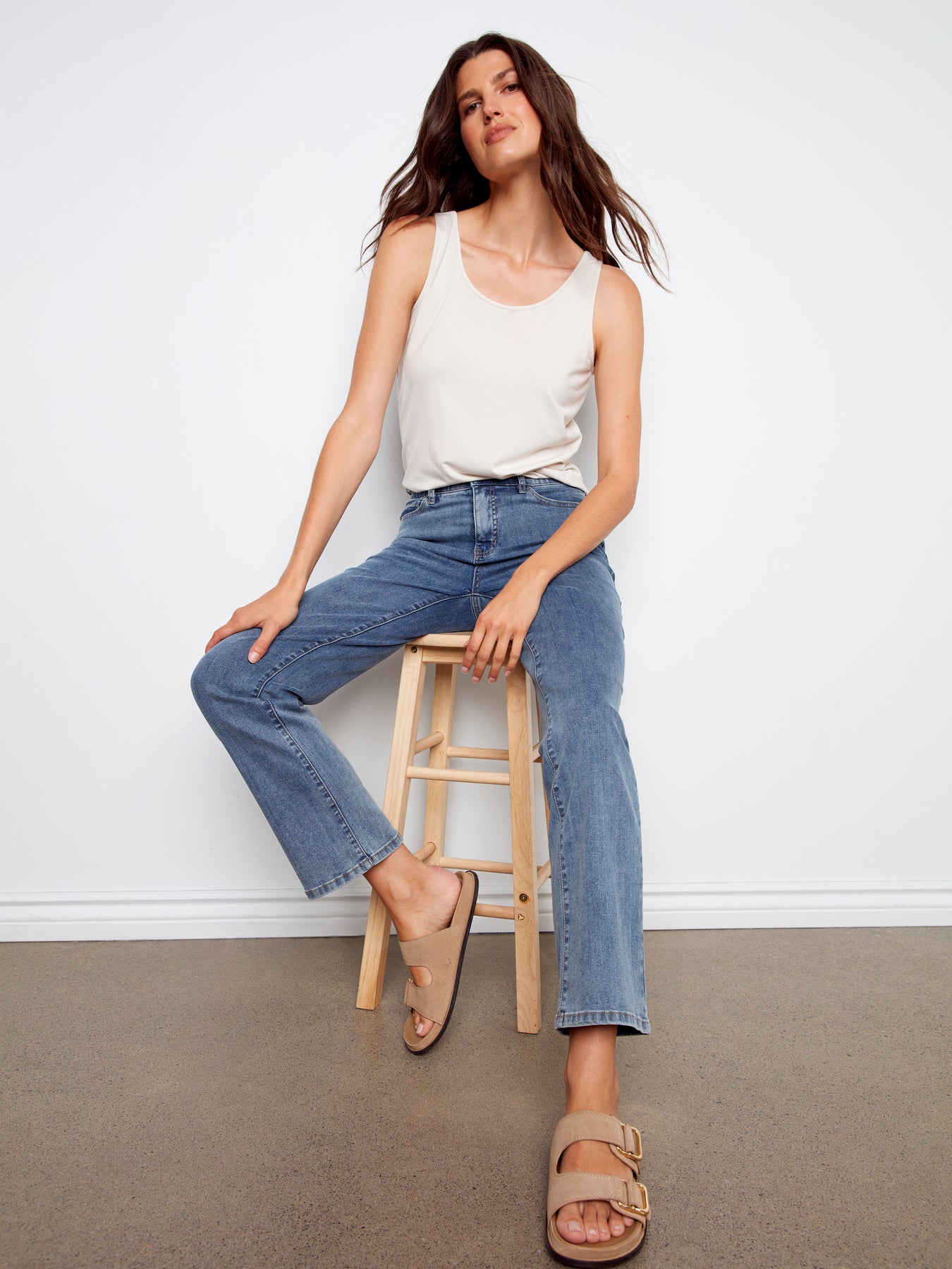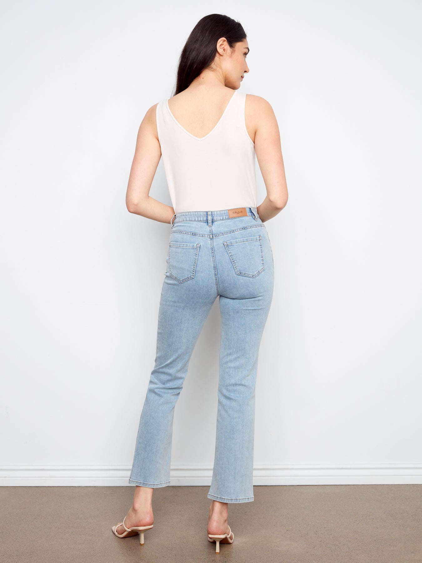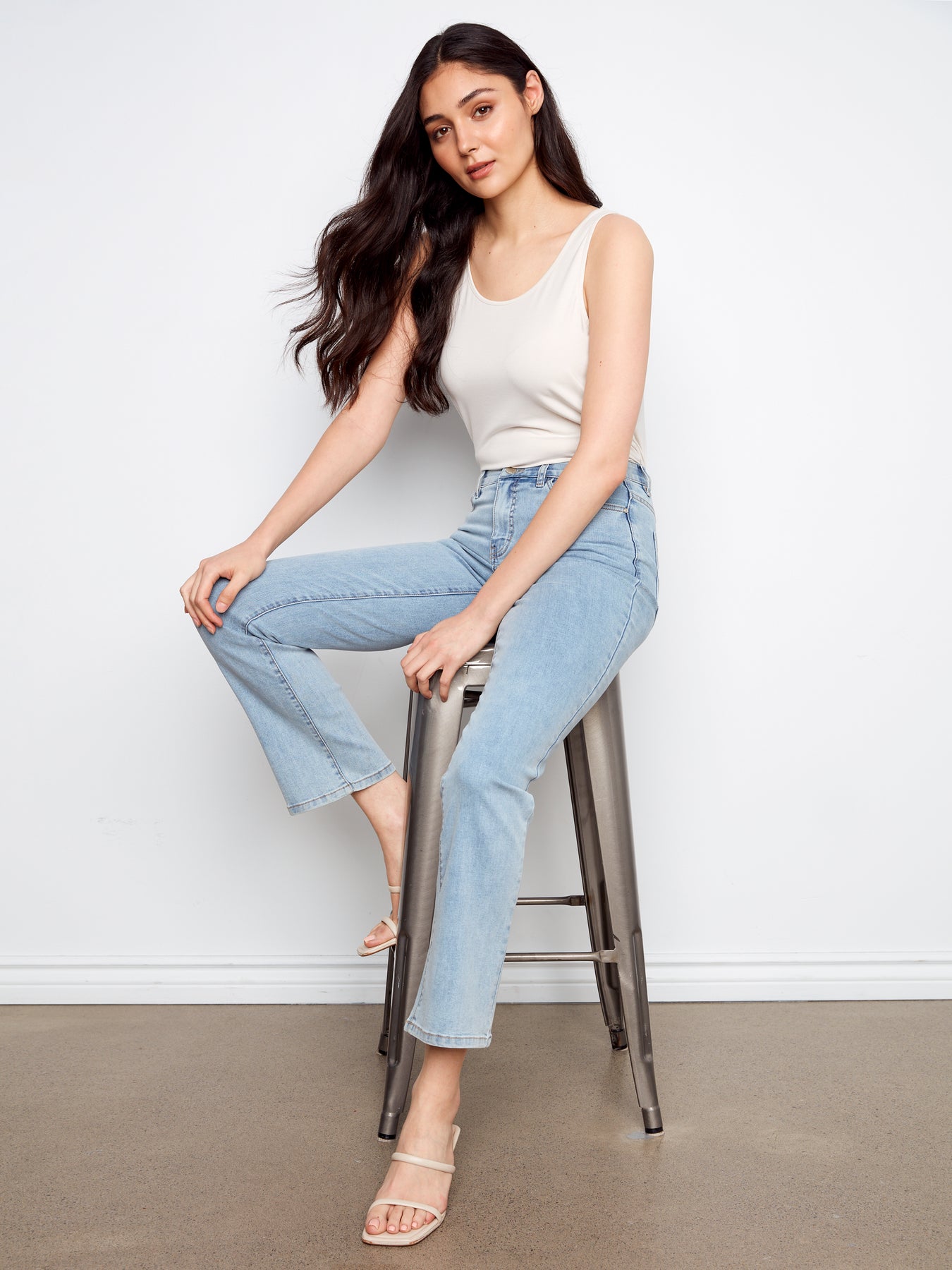 The Charlotte Straight Leg Jeans offer a timeless denim look with a clean, versatile silhouette. Designed with a flattering straight leg fit, they sit smoothly through the waist and hips before falling into an easy, streamlined leg. Crafted from soft stretch denim with classic five-pocket styling, they deliver all-day comfort and effortless polish for both casual and dressed-up outfits.