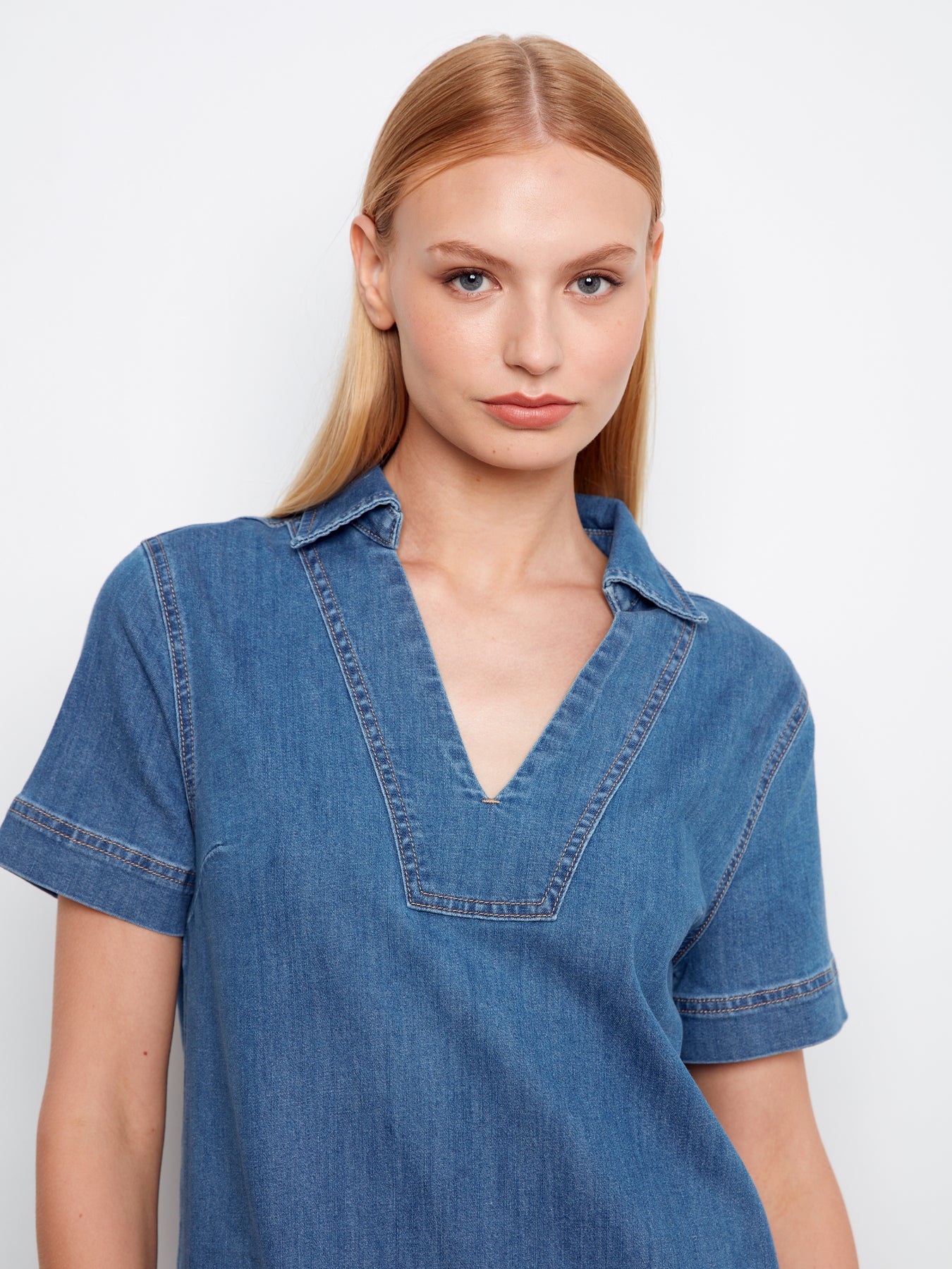 Collared V-Neck Denim Mini Dress Charlie B