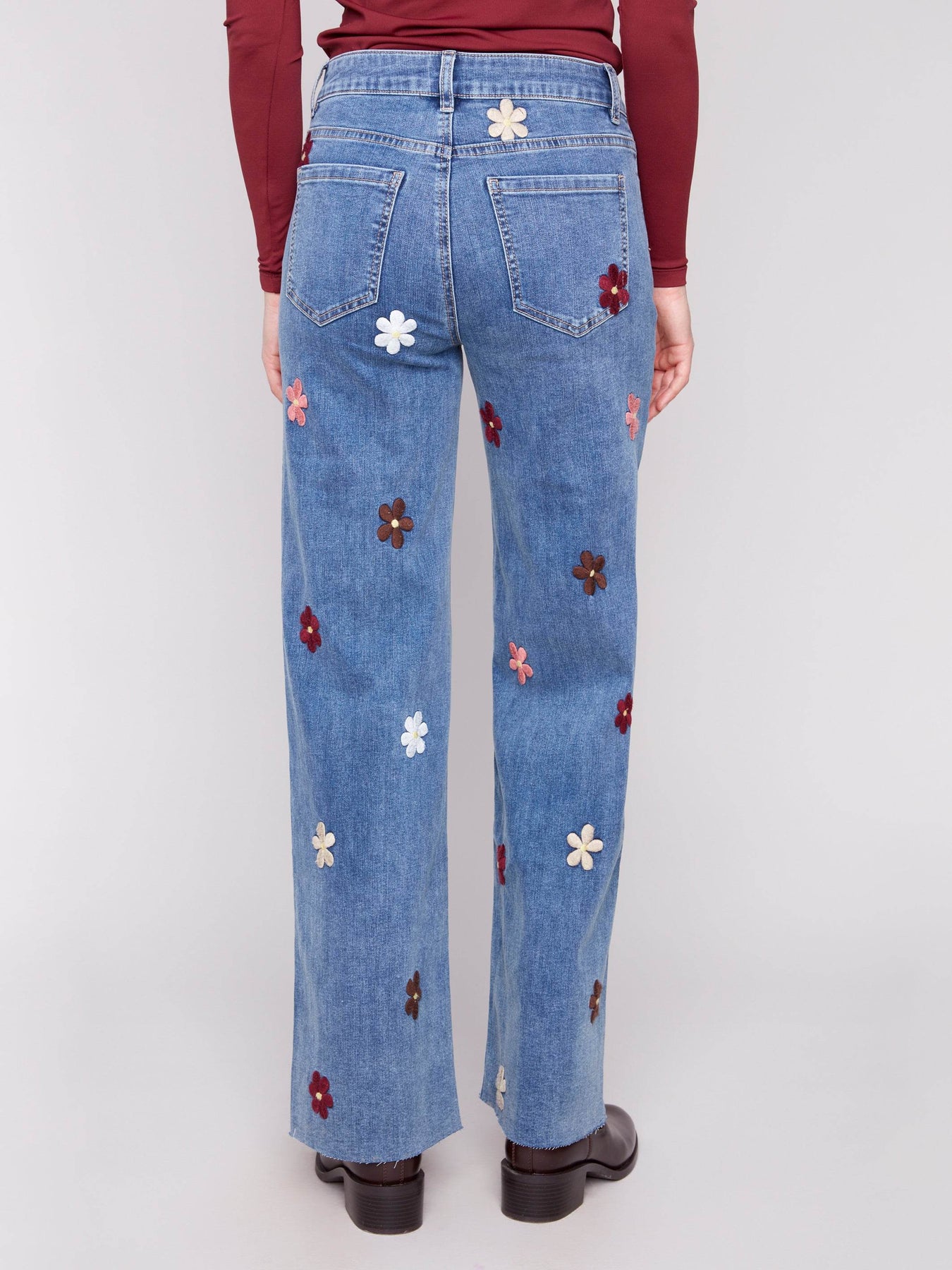 Wide Leg Jeans With Flower Patches - Dream Pants