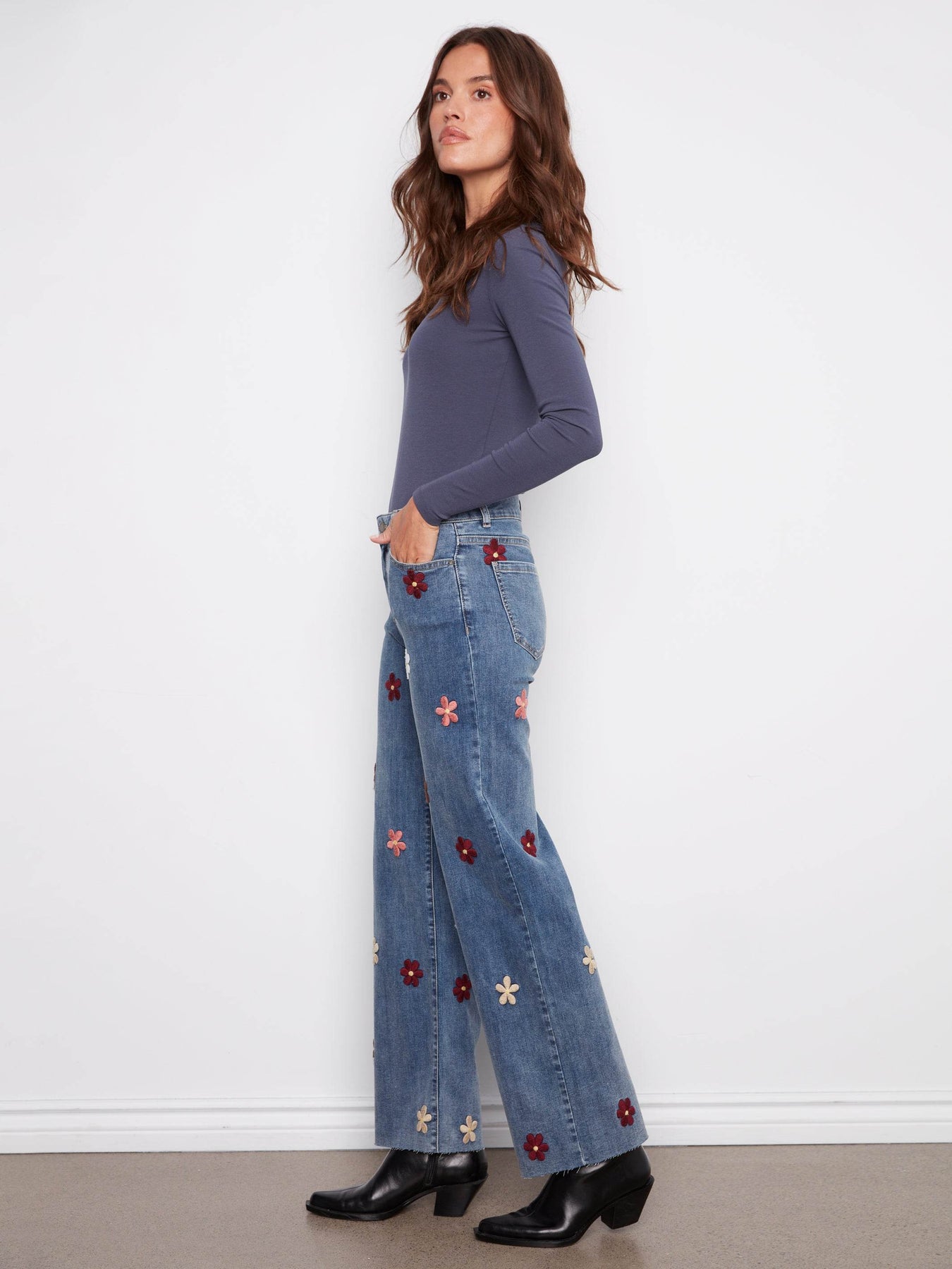 Wide Leg Jeans With Flower Patches