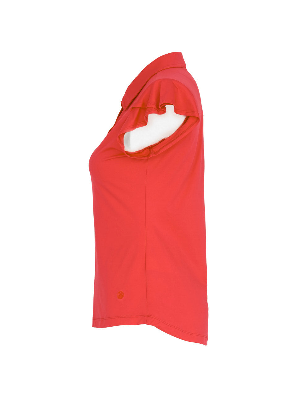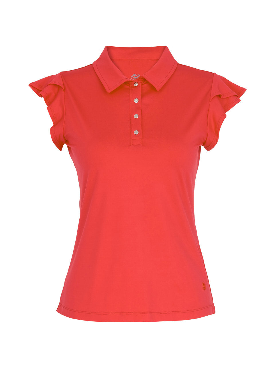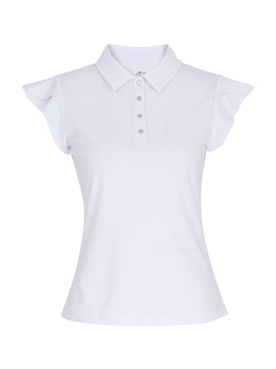 A refined take on the classic polo, this elegant top features soft flutter sleeves that add a feminine, graceful touch. The tailored silhouette and crisp collar create a polished look, while the smooth stretch fabric offers all-day comfort and ease of movement. Finished with a four-button placket, it’s a versatile piece perfect for the course, travel, or effortless everyday style.