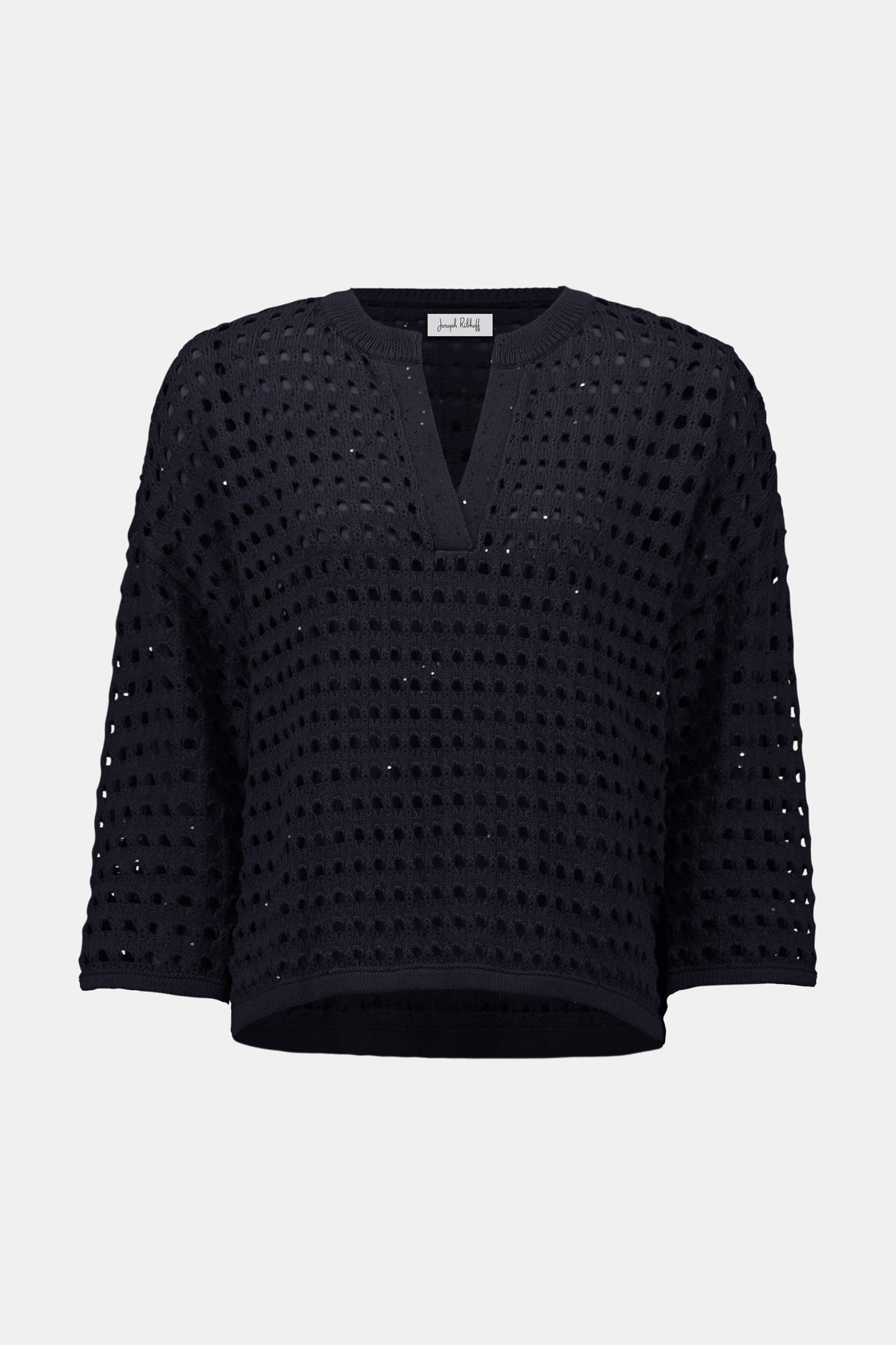 Cotton Blend Open Stitch Boxy Sweater Joseph Ribkoff