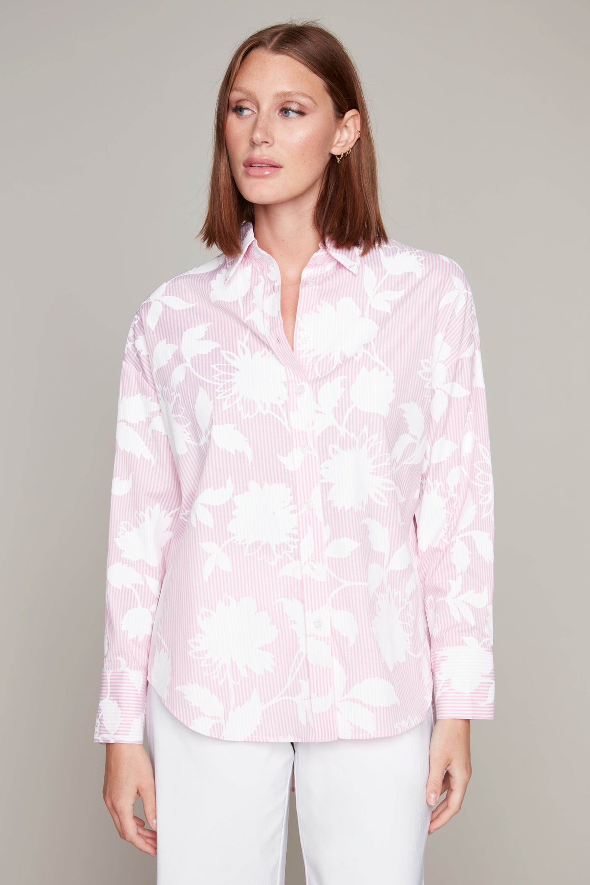 This elegant and floral blouse is more than just a piece of clothing; it's a statement of confidence and beauty. With delicate flower patterns and a soft fabric, you'll feel comfortable and stylish all day long. Whether you're dressing up for a special occasion or simply want to add a touch of femininity to your everyday wardrobe, this blouse is the perfect choice.