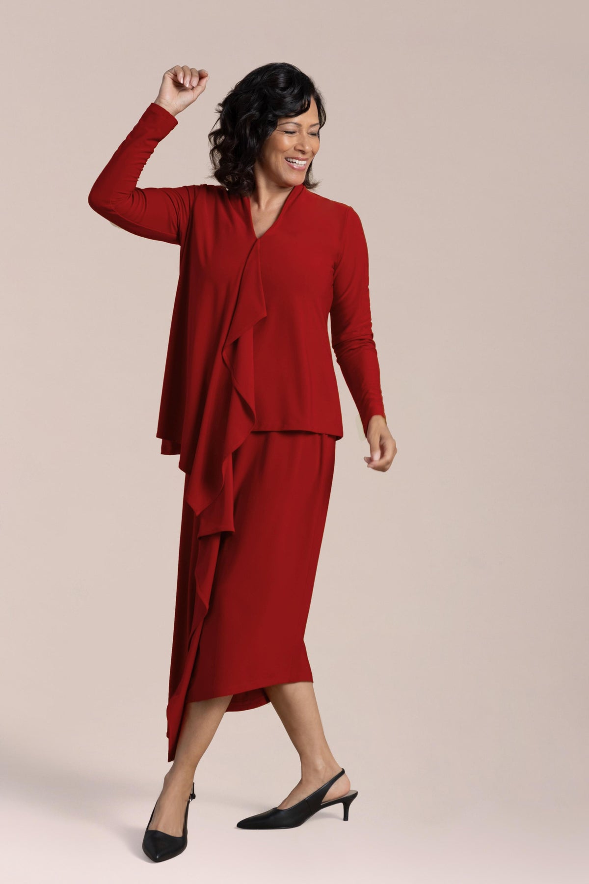 The Tempo Top features a distinctive V-neck design paired with a stylish mismatched hem that extends longer on one side, adding a modern twist to your wardrobe. Its long sleeves provide versatile coverage, perfect for layering or wearing alone. Crafted to blend comfort and unique style, this top effortlessly elevates any outfit, making it ideal for both casual and dressier occasions. Embrace contemporary fashion with the Tempo Top’s eye-catching asymmetry and flattering silhouette.
