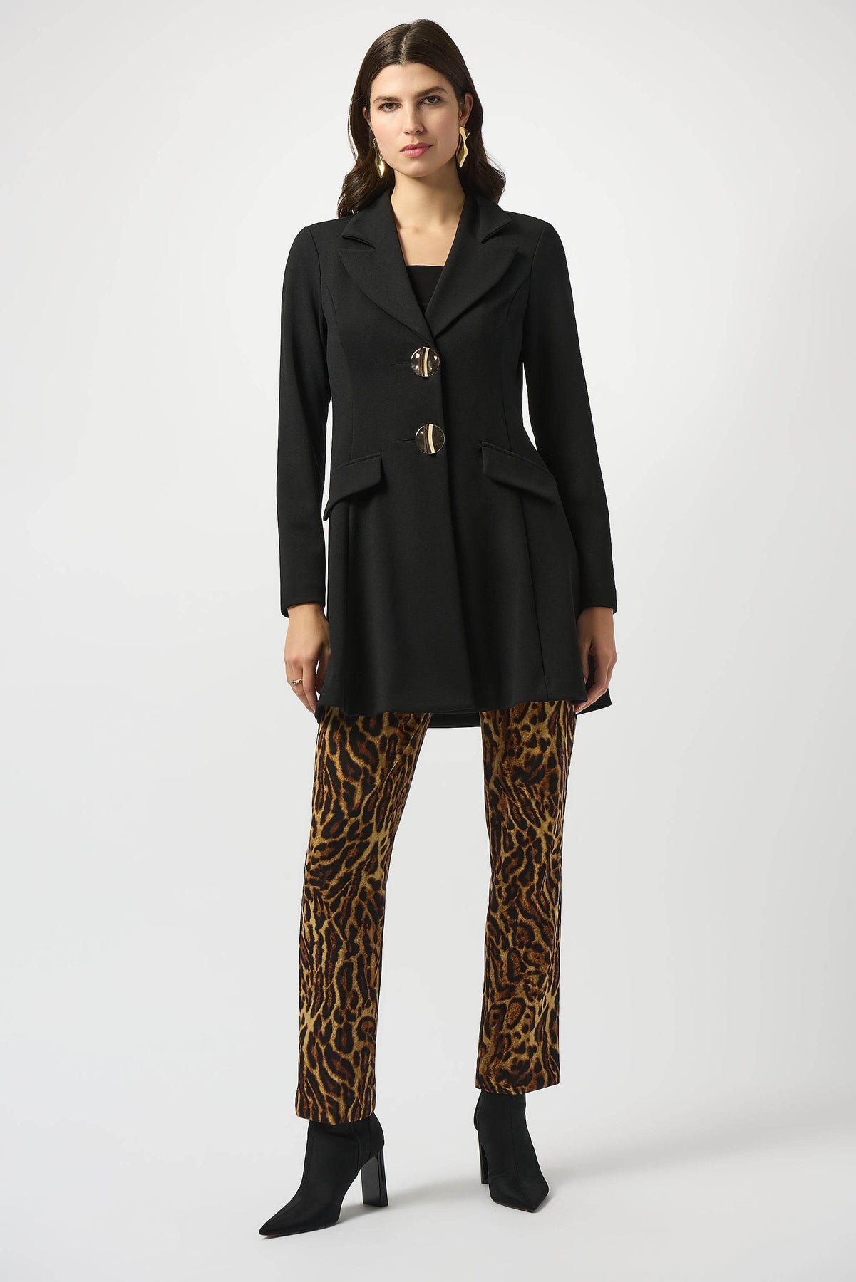 These pull-on pants redefine modern elegance with their sleek straight cut and captivating animal print that demands attention. The covered elastic waistband delivers all-day comfort without sacrificing style, ensuring a flawless fit for any occasion. Back leg slits add a distinctive touch of sophistication, elevating these pants from simply fashionable to absolutely essential for the contemporary wardrobe.