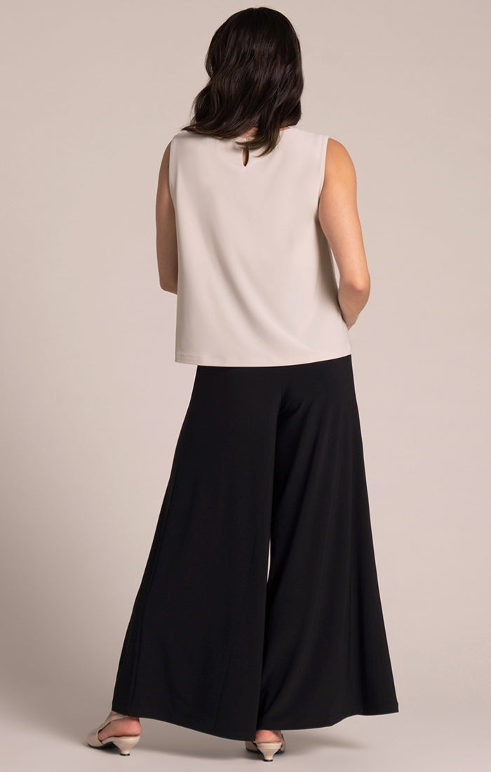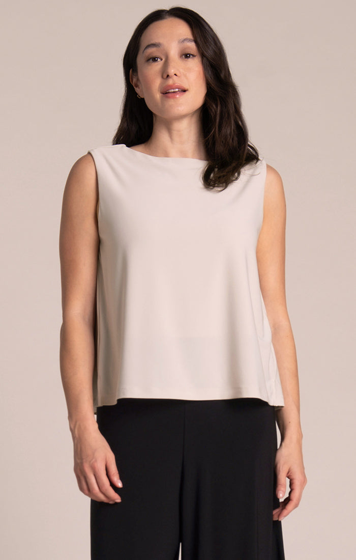 Elevate your style with our sophisticated Flared Shell top, boasting a graceful boat neckline, relaxed yet structured boxy silhouette, and dual front and back lining for ultimate comfort. This effortlessly chic tank pairs perfectly with wide-leg trousers for a refined casual look. Embrace both comfort and fashion with this must-have wardrobe staple.