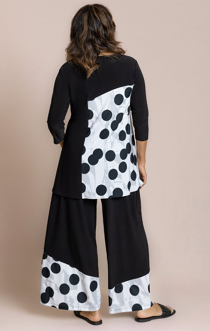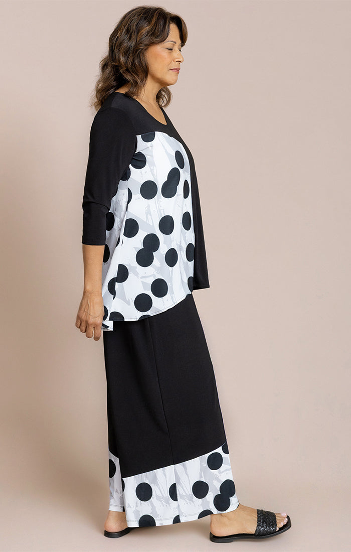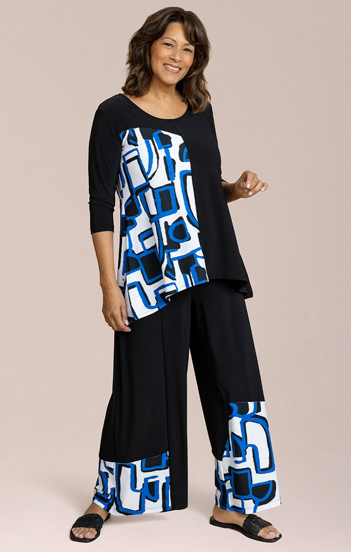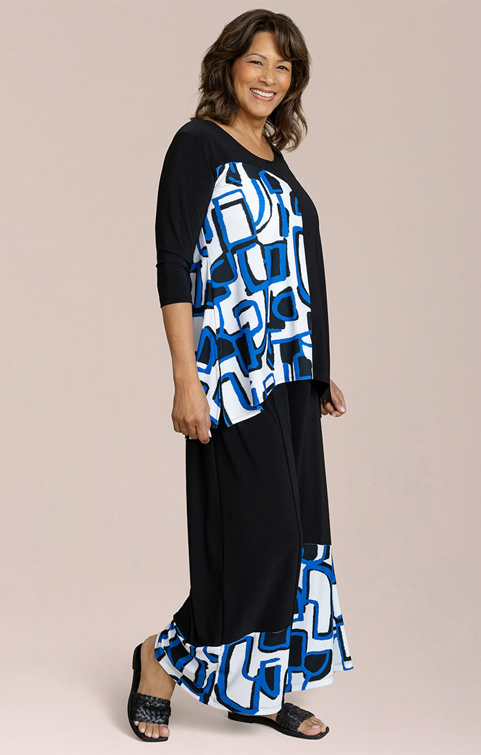 This eye-catching printed top blends fun with effortless comfort. Crafted from a soft, stretch knit, it drapes beautifully over the body while offering all-day ease. The relaxed silhouette is complemented by a flattering scoop neckline and three-quarter sleeves, making it a versatile piece for both casual and elevated looks.