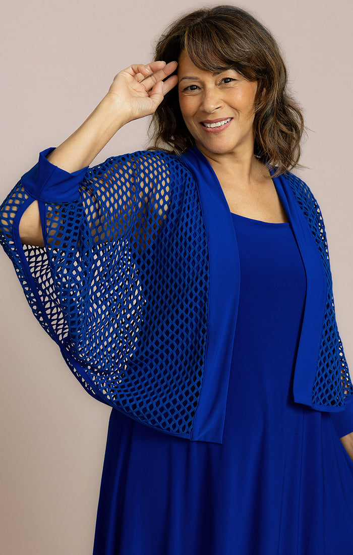 Drape yourself in understated luxury with this honeycomb shrug that transforms any outfit instantly. The signature batwing sleeves create an elegant silhouette while the open-knit construction keeps you cool and comfortable. Its airy mesh texture adds visual interest without bulk, making it the ideal layering piece for everything from casual separates to formal occasions. Lightweight yet impactful, this shrug delivers effortless sophistication that elevates your entire wardrobe.
