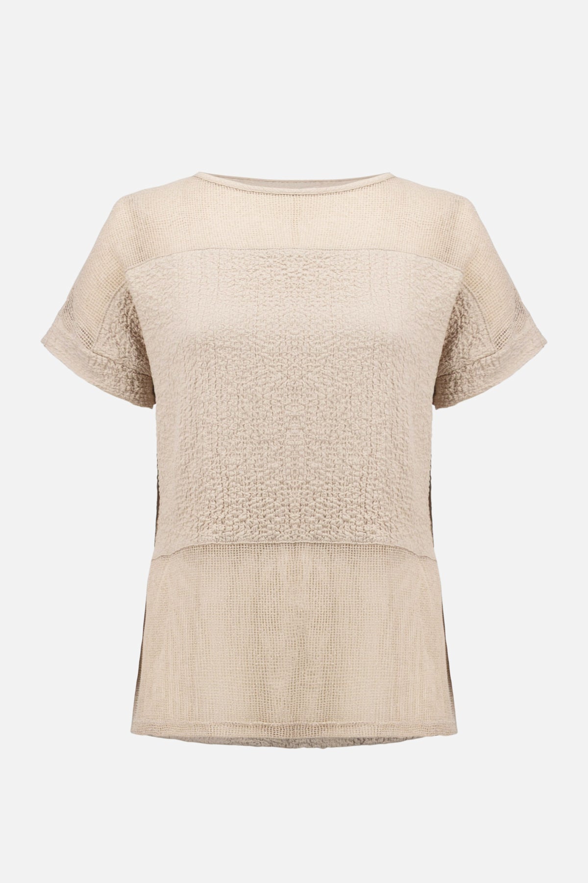 Seersucker and Mesh Boxy Top With Boat Neckline Joseph Ribkoff
