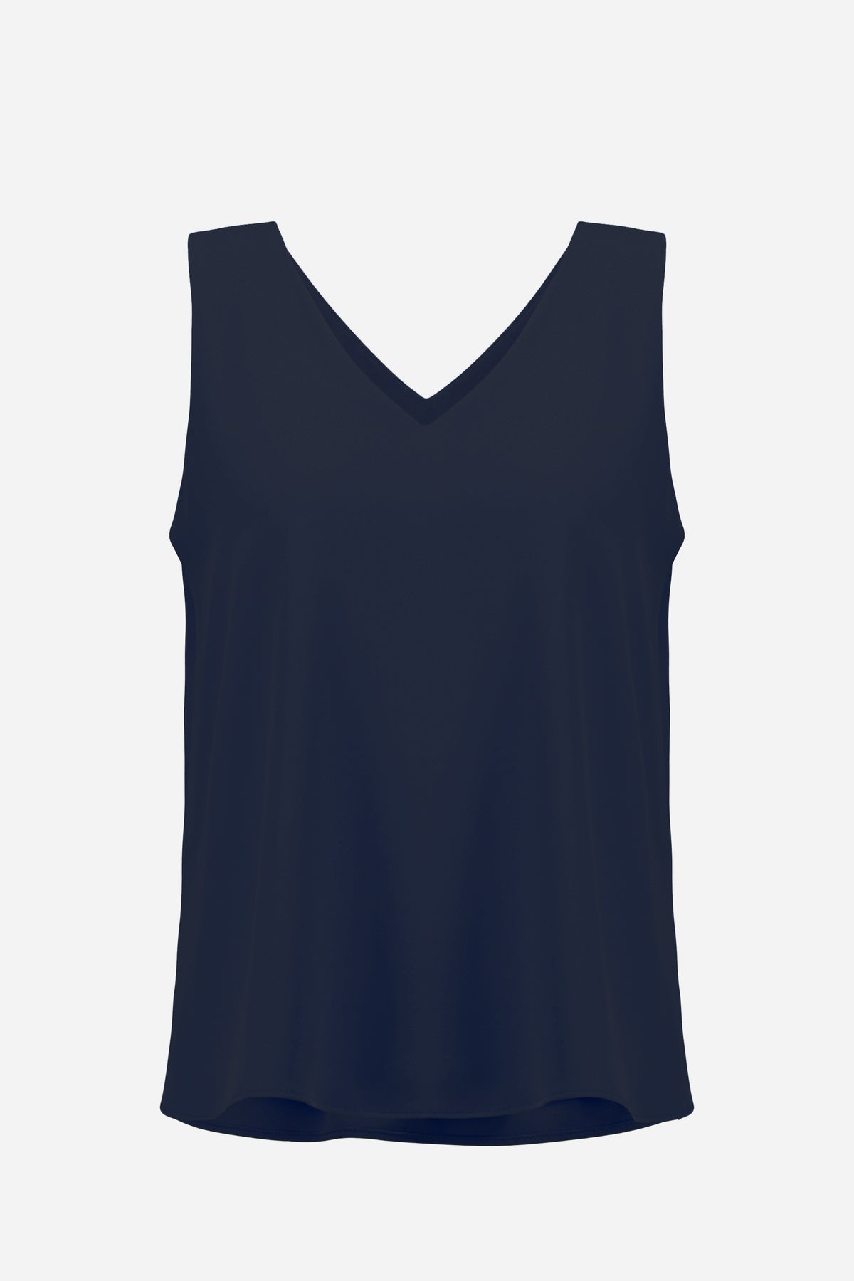 Sublimez votre garde-robe avec ce top sophistiqué en twill tissé, conçu pour une élégance naturelle. Son décolleté en V flatteur et sa coupe sans manches créent une silhouette raffinée, idéale pour passer du bureau à une soirée. Entièrement doublé, il offre un aspect lisse et impeccable, tandis que sa coupe droite assure un confort et une polyvalence exceptionnels. Associez-le au blazer ajusté en bouclé à col cranté 261101 pour une tenue professionnelle complète.