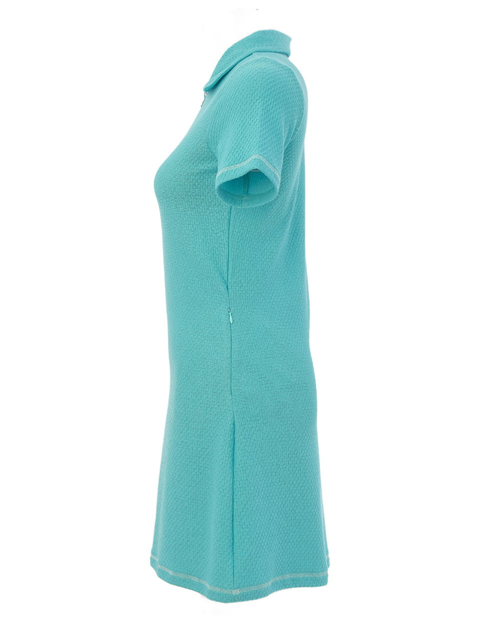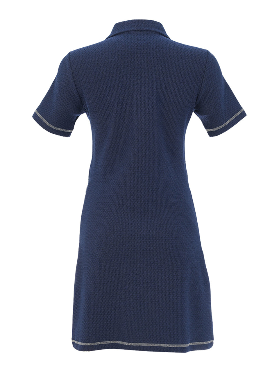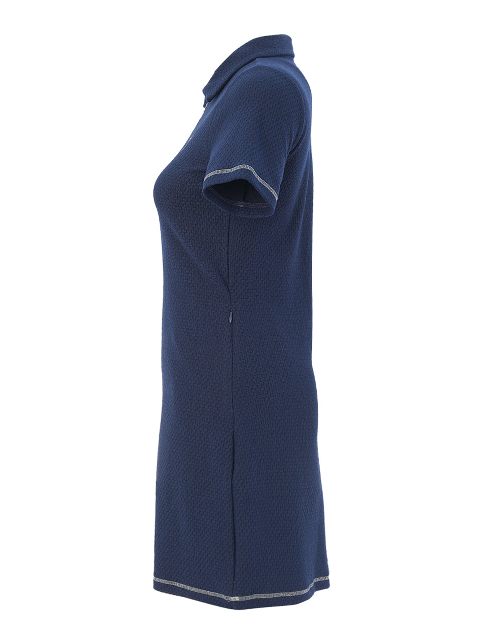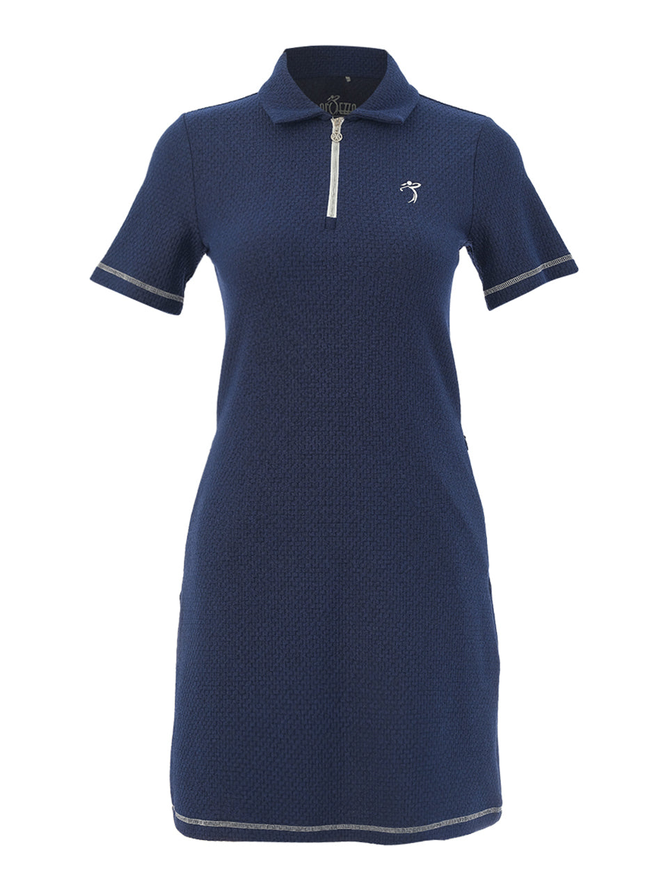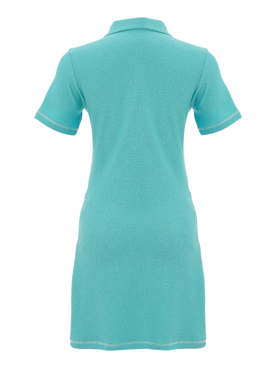 Sporty elegance meets effortless style in this refined polo dress. Designed with a textured stretch fabric and a sleek zip neckline, it offers a flattering silhouette that moves comfortably with you on and off the course. The tailored collar and short sleeves add a polished athletic touch, while the streamlined fit creates a modern, confident look perfect for golf days, travel, or casual summer outings.
