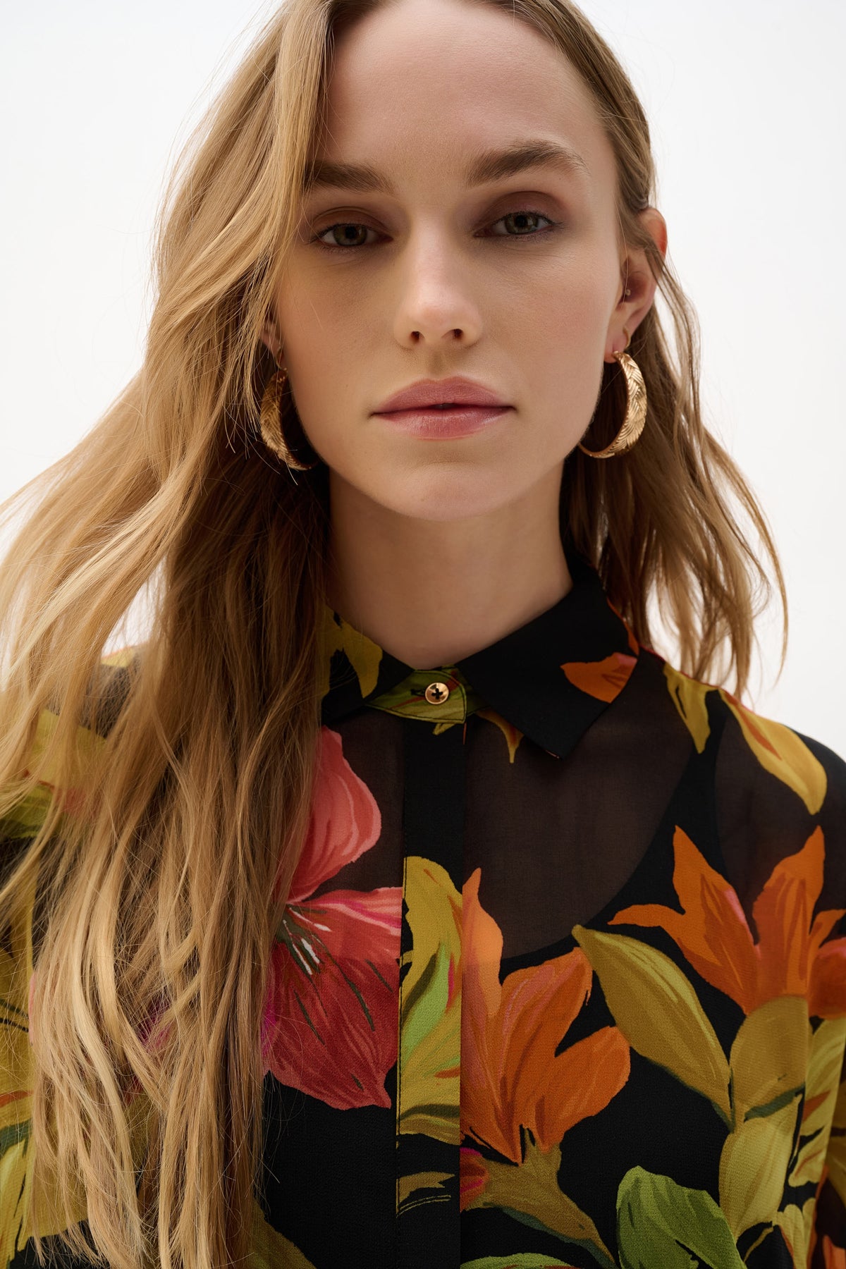 Chiffon Tropical Print Straight Blouse Joseph Ribkoff