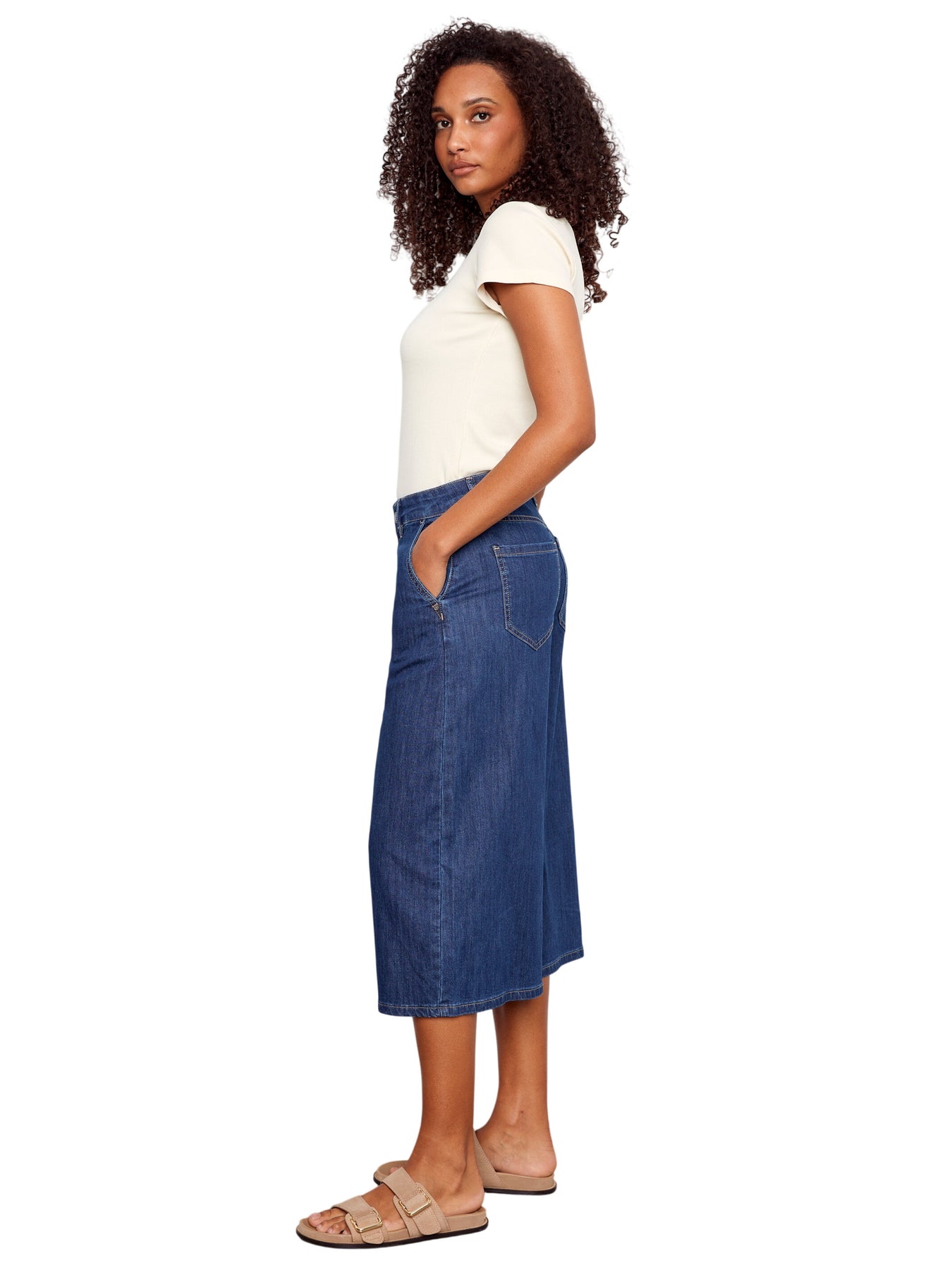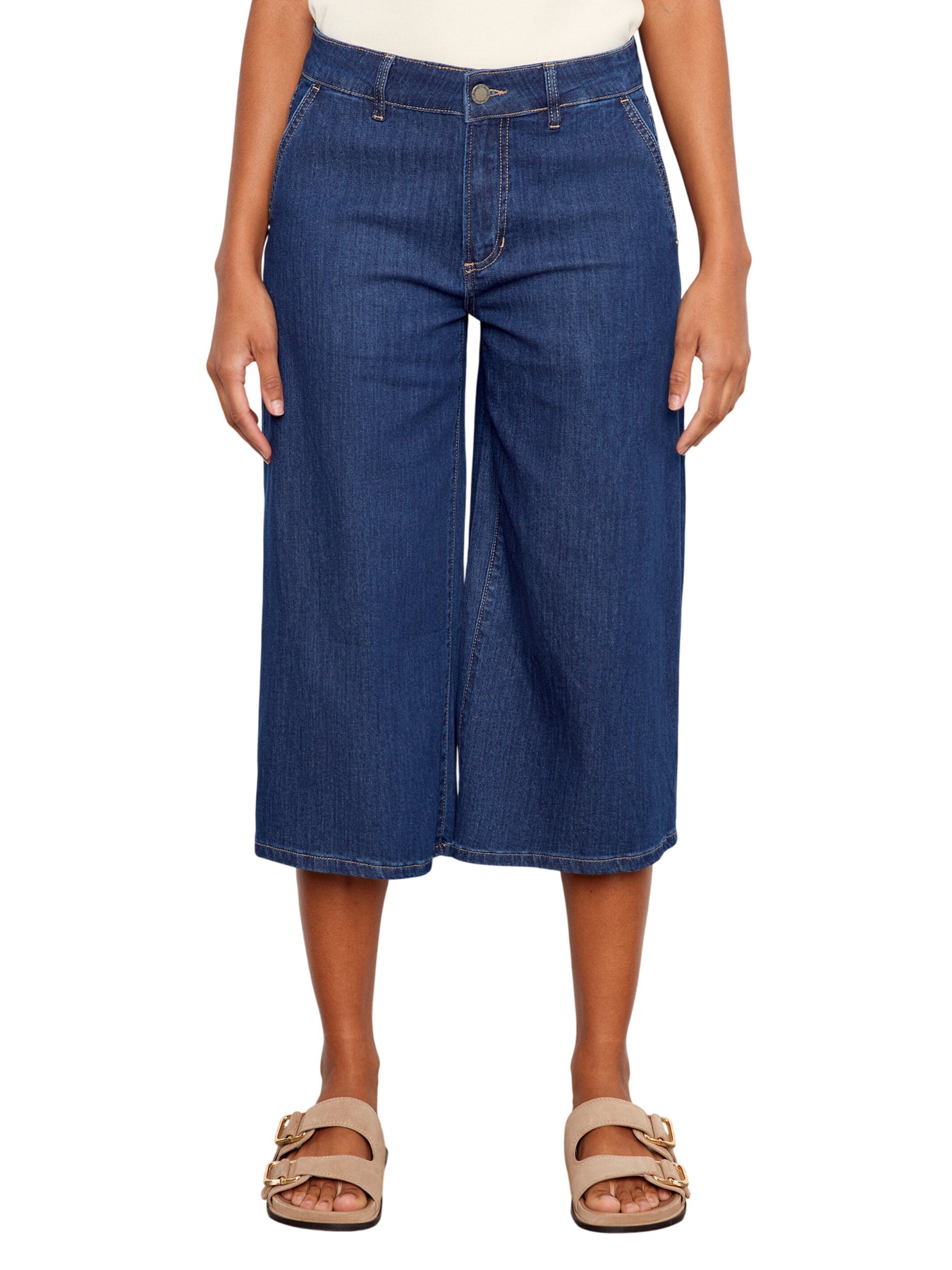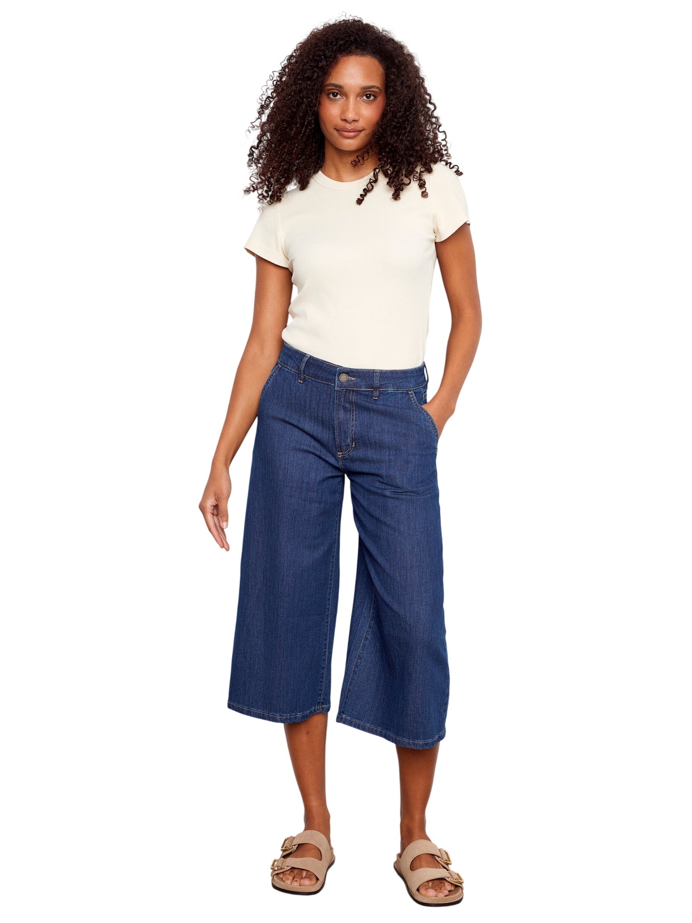 Cropped wide-leg jeans that command attention. High-rise cut delivers a sleek silhouette while the bold leg width makes a statement. The cropped length sits above the ankle for a daring, modern edge. Deep blue denim holds its shape with comfortable wear. Versatile enough to pair with anything—dress them down with a tee or elevate with a blouse and heels.