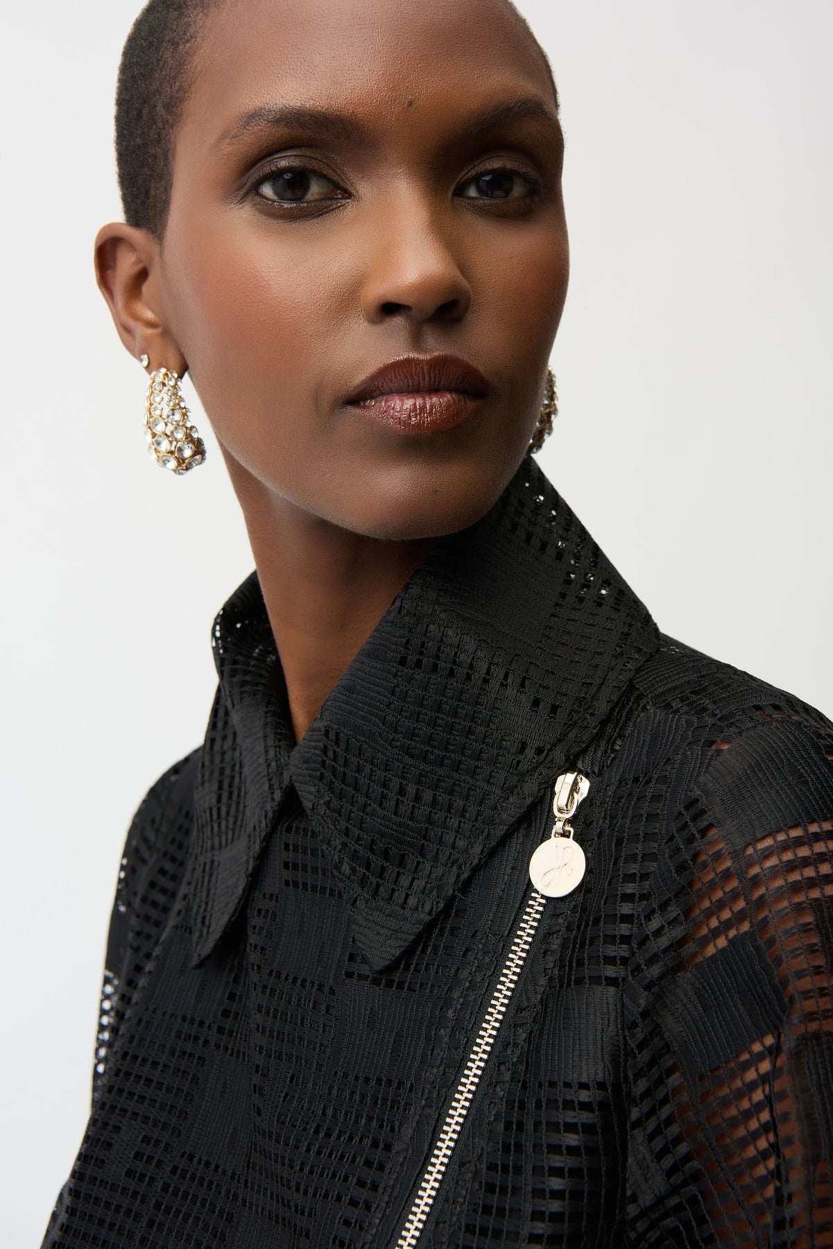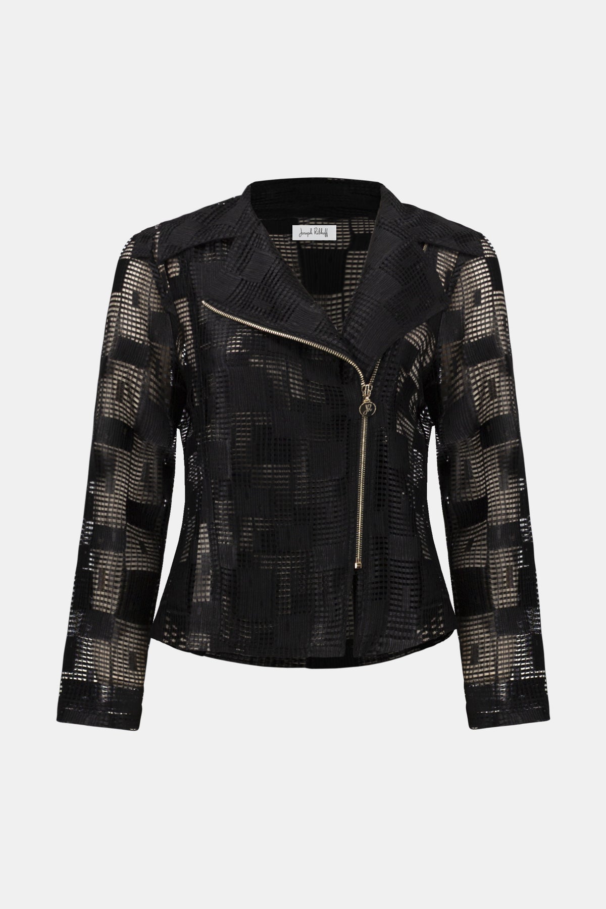 Geometric Mesh Moto Jacket With Asymmetric Zipper Joseph Ribkoff