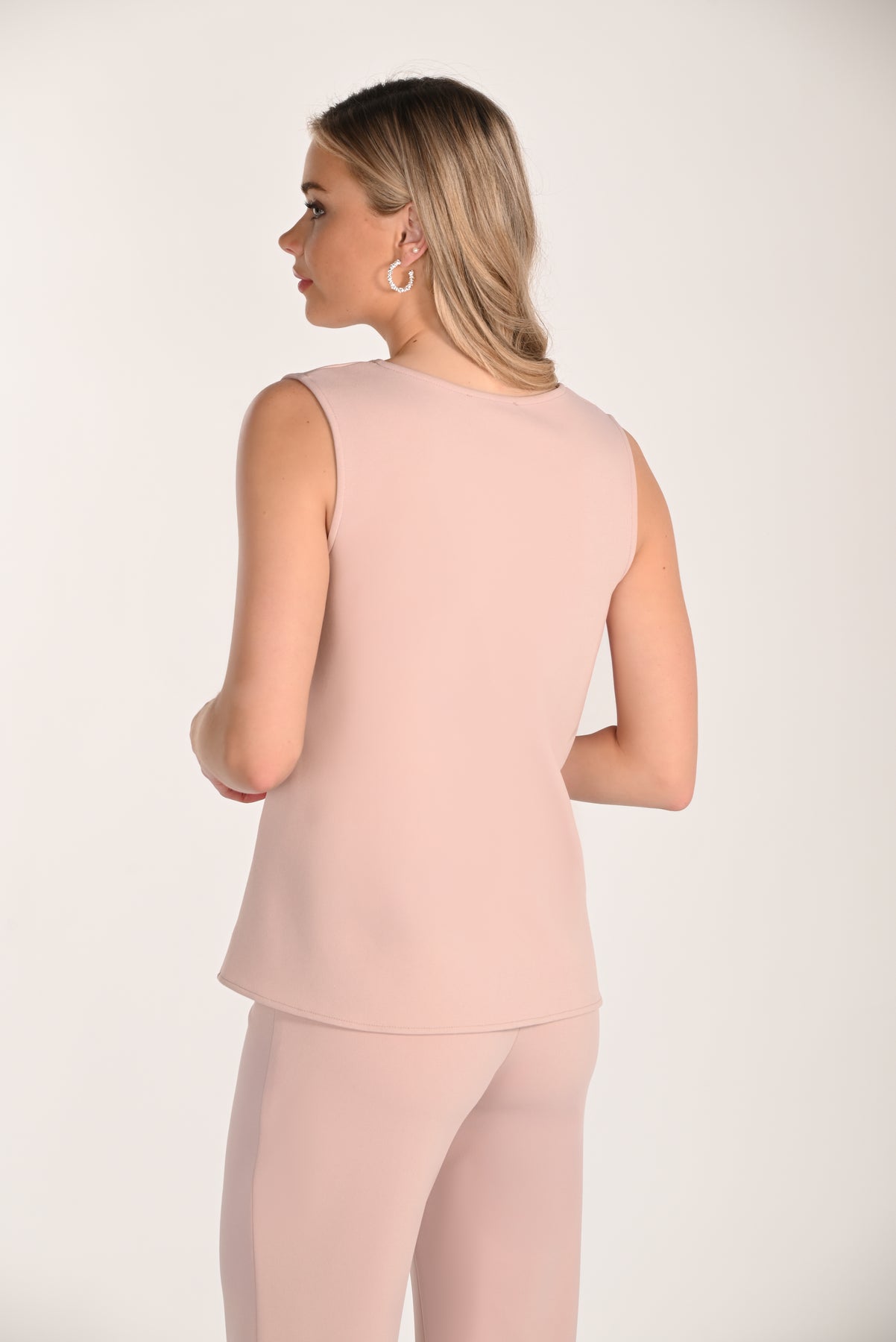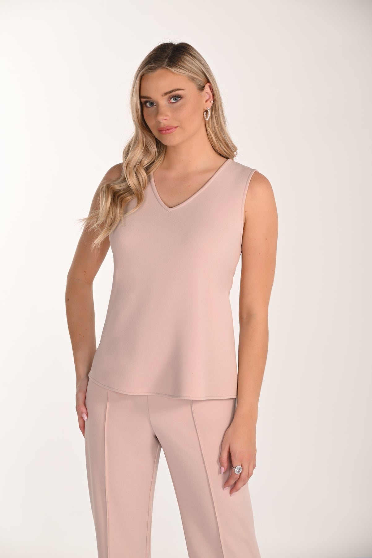 A versatile V-neck tank that works hard in any wardrobe. The smooth, stretchy fabric drapes beautifully while maintaining its shape, whether you wear it solo or layer it under your favorite jacket. Flattering, comfortable, and endlessly stylish—this essential piece pairs with everything from tailored pants to denim.
